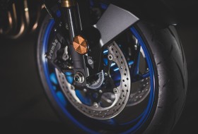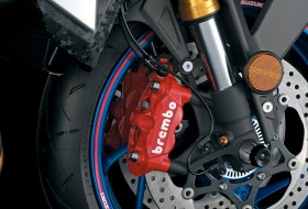 • 4-tłoczkowe przednie zaciski Brembo mono-block współpracujące z dwoma pływającymi tarczami o średnicy 310 mm dostarczają wysoką skuteczność i wyczucie hamulców.