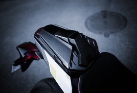 • Wąska, lekka i wyrazista tylna sekcja, przesuwająca środek ciężkości do przodu motocykla, profil tworzący wrażenie muskularnej, nabitej sylwetki.