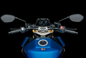 • Bogaty w informacje i czytelny wyświetlacz full-LCD prezentuje wyjątkową grafikę i niebieskie podświetlenie nawiązujące do image’u GSX-S-a 1000.
