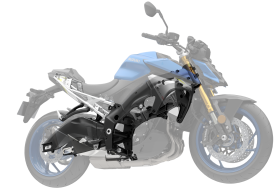 • Poprawiony kompaktowy układ wydechowy 4-2-1 o nowym kształcie kolektora, z przesuniętym systemem Suzuki Exhaust Tuning (SET), nowe katalizatory oraz przebudowana komora w celu spełnienia norm emisji Euro 5.
